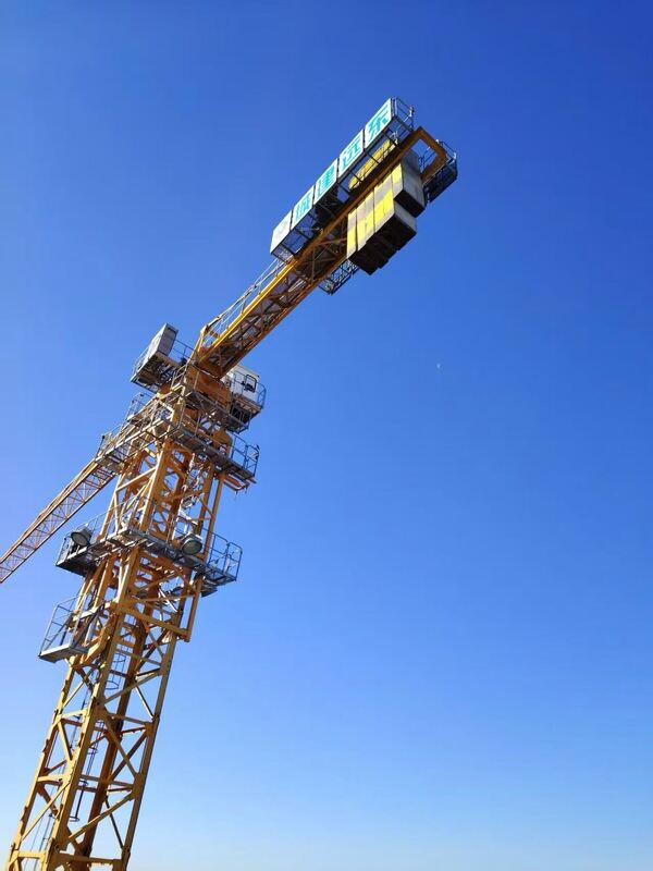 Der Turmkörper verwendet 2,0 x 2,0 x 3,0 m Mastabschnitte aus hochfestem Q345B-Stahl, was die strukturelle Stabilität gewährleistet. Ausgestattet mit hochwertigen Kernkomponenten (Motor, Getriebe, Motor) liefert er zuverlässige und effiziente Leistung. Der 56.000 kg schwere Kran ist in der markentypischen gelben Farbe gehalten und wird mit einer 1-Jahres-Garantie für zusätzliche Sicherheit geliefert.
